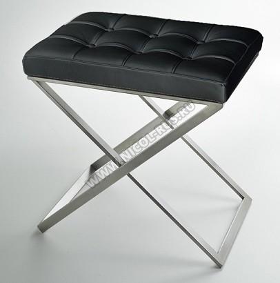 3SC Lino&Lone табурет стул с сиденьем из кожи со стежкой чёрная кожа никель сатинированный матовый.